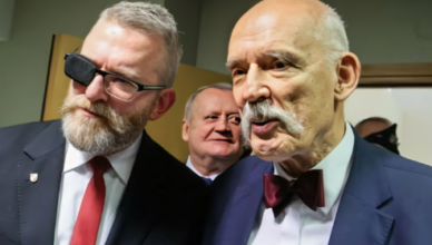 W warszawskim sądzie miał być pokaz politycznej lojalności: Janusz Korwin-Mikke na widowni, Grzegorz Braun na ławie oskarżonych i chóralne modlitwy za „prześladowanego” posła.