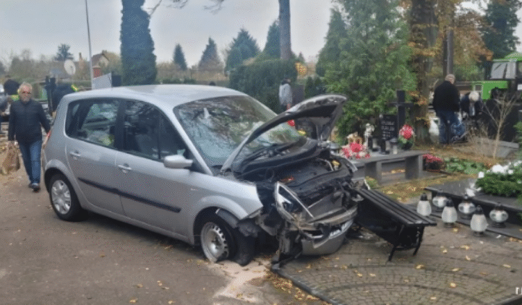 Do wypadku doszło w piątkowy poranek, 1 listopada w Stargardzie (woj. zachodniopomorskie). Dyżurny tamtejszej komendy otrzymał informację, że na cmentarz przy ul. Spokojnej wjechał samochód, uszkadzając przy tym ogrodzenie i nagrobki. Służby natychmiast ruszyły na miejsce.
