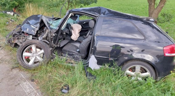 Samochód osobowy marki Audi zjechał nagle na przeciwległy pas jezdni, którym podróżowała prawidłowo jadąca rowerem 40-letnia kobieta i jej 5-letnia córka. Audi następnie uderzyło w drzewo.