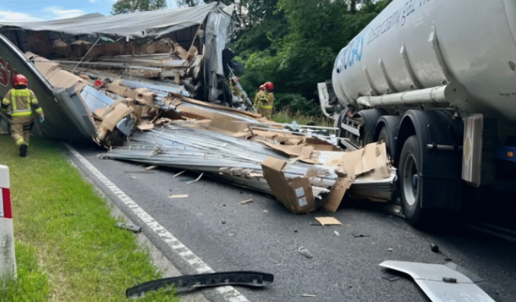 W środę 26 czerwca o godzinie 9:55 na krajowej dziesiątce doszło do zderzenia ciężarówki z cysterną.