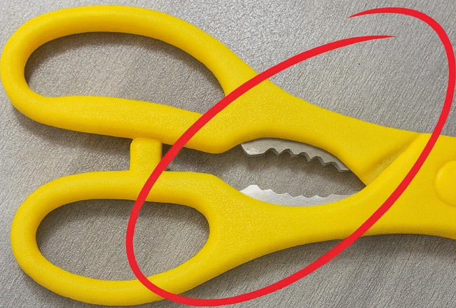 Czy zauważyłeś kiedyś tę ząbkowaną część ukrytą między rękojeściami kuchennych nożyczek, tuż za miejscem, gdzie spoczywają Twoje palce? Pewnie zastanawiałeś się, do czego ona służy.