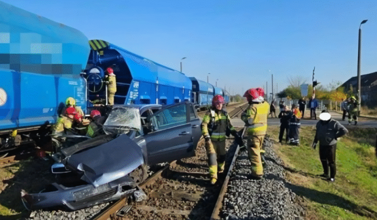 Służby otrzymały zgłoszenie o godz. 11.40 o wypadku z udziałem samochodu osobowego marki Opel i pociągu towarowego PKP Cargo. Siła zderzenia była bardzo duża.