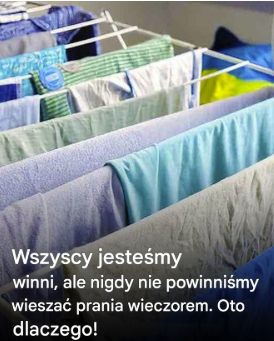 Po dniu pracy wiele osób decyduje się na powieszenie prania wieczorem. To logiczne: pralka pracowała poza godzinami szczytu (co jest korzystniejsze), w domu panuje cisza i wszystko wydaje się być przygotowane na to, by wykonać to zadanie bez stresu. Jednak pod tą pozorną prostotą kryje się często pomijana wada.