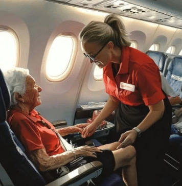 Przeprowadzałem rutynowe kontrole w klasie biznes, gdy usłyszałem męski głos pełen paniki. Trzy miejsca dalej, starsza kobieta chwyciła się za gardło, a jej twarz przybrała niepokojący odcień szkarłatu.