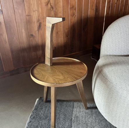 Ma około 60 cm wysokości , idealną wysokość do siedzenia przy krześle. Wystarczająco duży na napój, książkę lub telefon. Wystarczająco mały, aby zmieścić się niemal wszędzie.