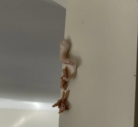 Wszedłem do kuchni, ledwo przytomny. Kawa wciąż się parzyła, kiedy ją zobaczyłem – dziwną różową pianę przyklejoną do ściany.
