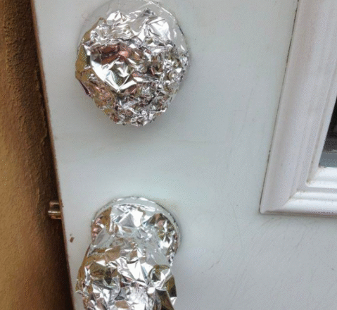 · Dyskretnie monitoruj swoje drzwi : Owiń cienką taśmą folii aluminiowej klamkę drzwi wejściowych. Jeśli ktoś spróbuje ją otworzyć, będzie zdeformowana – łatwa do zauważenia wizualna wskazówka.