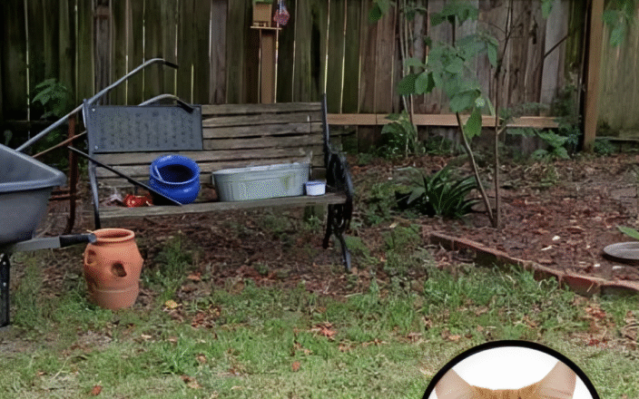Iluzja została pierwotnie opublikowana na Reddicie przez użytkownika Ginny_Rummy i szybko rozprzestrzeniła się po internecie. Na pierwszy rzut oka zdjęcie przedstawia standardową aranżację ogrodu – taką, jaką można znaleźć w każdym domu na przedmieściach. Na trawniku widać drewniany płot, podwyższone grządki, taczkę, gliniane donice i zestaw narzędzi ogrodniczych. Nad nimi góruje wysokie drzewo, którego gałęzie rozciągają się, rzucając cętkowane cienie na cały ogród.