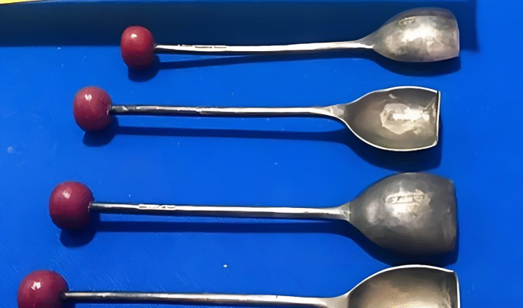 Odpowiedź nie kazała na siebie czekać. Okazało się, że te dziwne łyżki to vintage’owe łyżki do koktajli! Ich płaski koniec służył do rozgniatania owoców, jak jagody czy wiśnie, w napojach, aby dodać im specjalnego smaku.