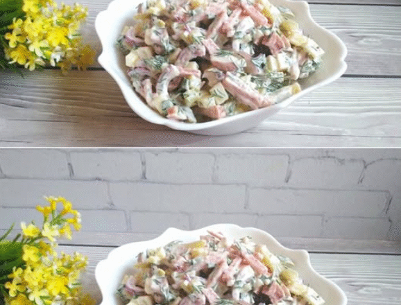 Dzisiejszą kolacją jest sałatka „Old Munich”. Po tym, jak spróbowałam jej po raz pierwszy w przytulnej restauracji, udało mi się odtworzyć przepis w domu i teraz stała się ona ulubioną potrawą w naszym rodzinnym menu. Jest bogata i pikantna, z wyjątkowym dressingiem.