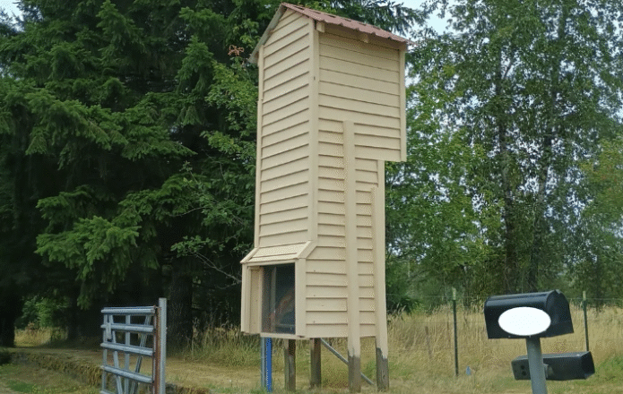 Kierowcy jadący cichą, wiejską drogą na północ od Gresham w stanie Oregon często zauważają wysoką, smukłą drewnianą wieżę stojącą na końcu podjazdu.