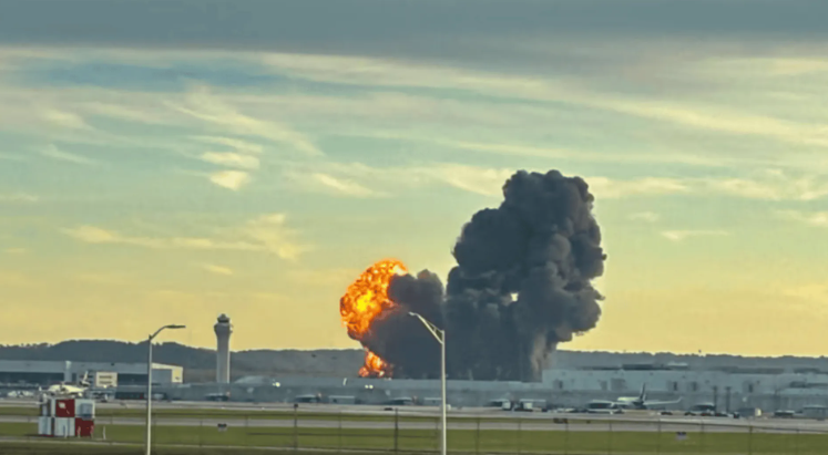 Chwilę później maszyna runęła na zabudowania znajdujące się tuż za ogrodzeniem lotniska im. Muhammada Alego w Louisville, powodując potężny wybuch. Na nagraniach udostępnionych w sieci widać gęsty, czarny dym unoszący się nad okolicą oraz służby próbujące opanować pożar.