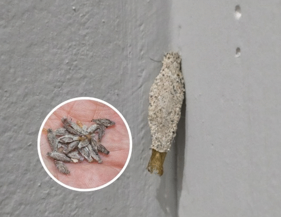 Jak na ironię, kamitetep jest bardziej znany ze swojego stadium larwalnego niż dorosłego motyla. Pojawia się w szarych, płaskich, przypominających kokony osłonkach, które gąsienice noszą ze sobą jako tarczę, szukając pożywienia. Kiedy nadchodzi czas, gąsienica wykorzystuje je jako osłonkę poczwarkową, przekształcając się w dorosłą, uskrzydloną ćmę, wyjaśnia EDIS. Ludzie mogą zdać sobie sprawę, że mają problem z owadami, po znalezieniu jednej z takich osłonek z rozwijającą się ćmą w środku. Mogą też uznać ją za niepokojąco pustą. Osłonki dobrze kamuflują się w ogrodach, przez co trudniej je wcześnie zauważyć.