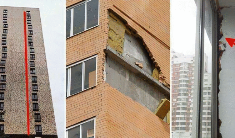 13. 14-piętrowy budynek w Tiumeniu przechylił się.