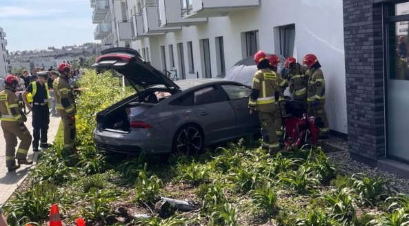 Gdańsk. Audi wjechało w idącą chodnikiem kobietę z 2-letnim dzieckiem. Później samochód kierowany przez 50-latka wbił się ścianę pobliskiego budynku. Policja zna już prawdopodobną przyczynę niebezpiecznego zdarzenia.