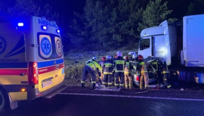 47-letni kierowca samochodu jest ciężko ranny. Podobnie jak 46-letni drugi z pasażerów. Poszkodowani są pod opieką ratowników medycznych.