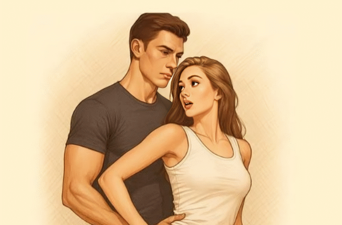Ten gest emanuje pewnością siebie i namiętnością. Nie jest niegrzeczny, lecz raczej troskliwy i pełen pożądania – „Jesteś mój i chcę być blisko”. Ten gest przywołuje flirt i iskrę, która podtrzymuje związek.