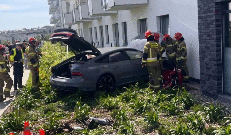Gdańsk. Audi wjechało w idącą chodnikiem kobietę z 2-letnim dzieckiem. Później samochód kierowany przez 50-latka wbił się ścianę pobliskiego budynku.