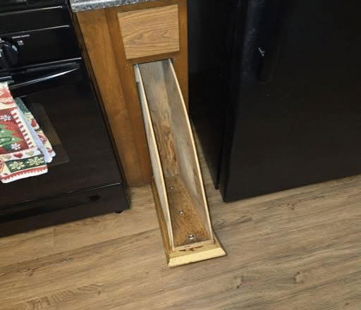 Ta wąska szafka pokazuje, jak przemyślany design pozwala wykorzystać każdy centymetr kuchni – nawet w ciasnych przestrzeniach. Choć idealnie nadaje się do przechowywania akcesoriów do pieczenia, może służyć również innym celom. Niektórzy właściciele domów przechowują w niej przyprawy, małe patelnie lub maty do krojenia.