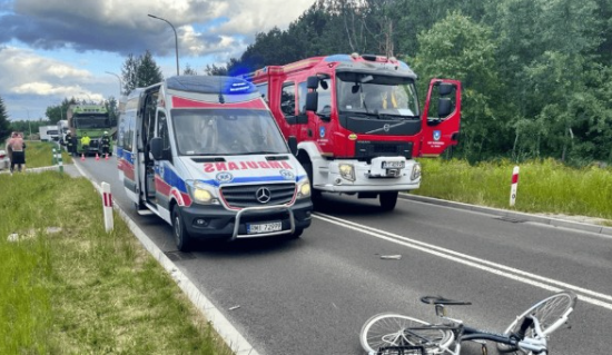 Osobowy mercedes, którym podróżowała 39-letnia kobieta, podczas manewru wyprzedzania uderzył w jadącego przed nim, 76-letniego rowerzystę.