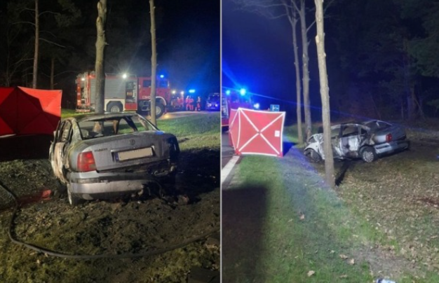 Jak się okazało, na skutek czołowego uderzenia w drzewo, w płomieniach stanął samochód osobowy marki volkswagen. Niestety, dwie osoby znajdujące się w pojeździe, spłonęły żywcem.
