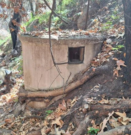 Na pierwszy rzut oka może wyglądać jak bunkier lub opuszczona skrzynka narzędziowa. Jednak jego grube ściany i wąski otwór sugerują jego prawdziwe przeznaczenie. Prawdopodobnie była to cysterna na wodę na zboczu wzgórza – dół zaprojektowany dziesiątki lat temu w celu gromadzenia i magazynowania wody deszczowej lub źródlanej dla pobliskich domów, gospodarstw rolnych lub zwierząt gospodarskich.