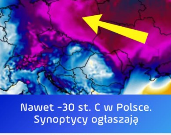 Od nocy z 17 na 18 stycznia prognozowane są niskie temperatury, które obejmą całą Polskę. W zachodnich i południowych województwach, temperatury w ciągu dnia nadal mogą czasem przekroczyć zero, ale prędko się to skończy. Portal twojapogoda.pl informuje, że na wschodzie Polski temperatura może spaść nawet do -30 stopni, a na północnym wschodzie może się jeszcze bardziej ochłodzić.