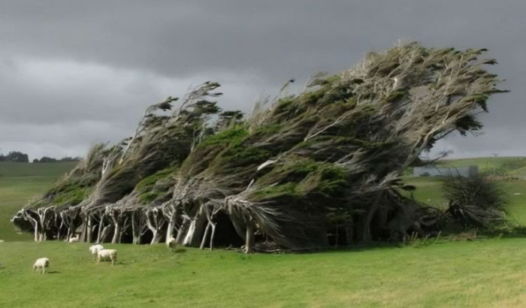 8. Drzewa smagane wiatrem w Nowej Zelandii