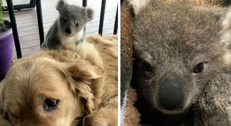 Kiedy podeszła, była w szoku: ich pies siedział na werandzie, a mała koala nieśmiało się do niej przytulała.