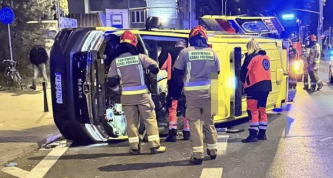 Ambulans, będący w trakcie transportu pacjenta do szpitala, wjechał na skrzyżowanie, korzystając z sygnałów dźwiękowych i świetlnych. Niestety, na tym samym skrzyżowaniu pojawiła się taksówka, która uderzyła w bok karetki. Siła zderzenia spowodowała, że pojazd uprzywilejowany przewrócił się na bok.