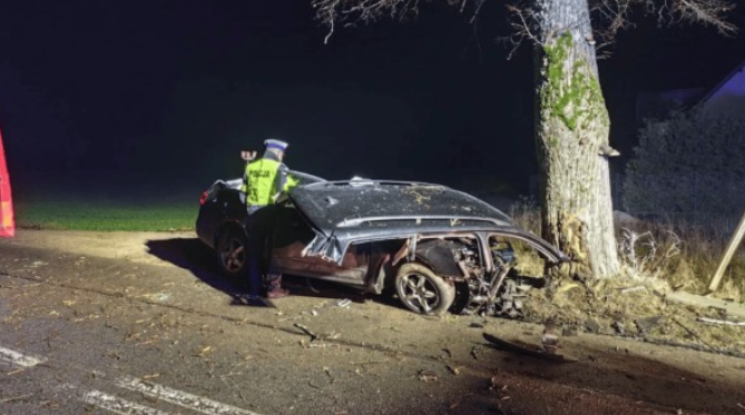 Jak podają mundurowi, 30-letni kierowca z nieznanych dotąd przyczyn, zjechał z drogi i uderzył w drzewo. Zdjęcia opublikowane przez funkcjonariuszy wskazują, że uderzenie musiało być bardzo silne – przód pojazdu jest całkowicie zgnieciony. Niestety, mimo szybkiej interwencji ratowników, życia młodego mężczyzny nie udało się uratować, zginął na miejscu.