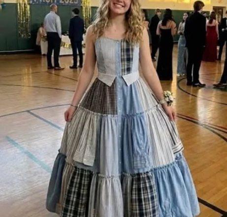 W miarę jak zbliżał się sezon balowy, Nicole czuła się odłączona od rozmów o projektanckich sukienkach i drogich planach. Szukając sposobu, by uczcić człowieka, który był całym jej światem, postanowiła zabrać go ze sobą w duchu. Pod okiem swojej ciotki, Nicole starannie kroiła i szyła stare robocze koszule ojca – niebieskie, szare i wyblakłe zielone tkaniny, które nosił, wspierając jej marzenia – tworząc niepowtarzalną patchworkową suknię wieczorową. Suknia była czymś więcej niż odzieżą; była fizyczną mapą miłości ojca, z rękawami, które obejmowały ją w trudne dni, i kołnierzami, które prostował przed jej pierwszym dniem w szkole.