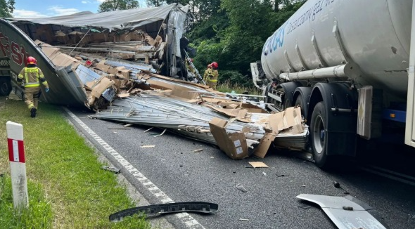 W środę 26 czerwca o godzinie 9:55 na krajowej dziesiątce doszło do zderzenia ciężarówki z cysterną.