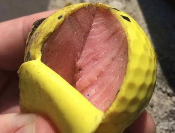 Ta piłka golfowa wygląda, jakby miała w środku mięso.