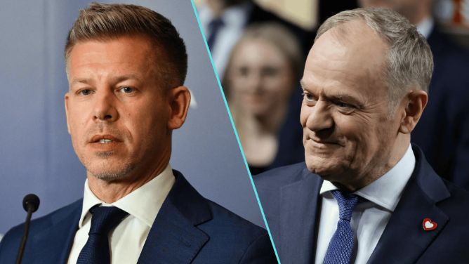 „Cześć Péter, tak się cieszę” – mówi rozpromieniony szef polskiego rządu, gratulując Magyarowi sukcesu.