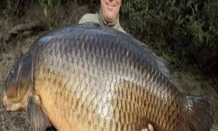 Zwycięski rybak z dumą przyniósł do domu ogromnego karpia, owoc udanego dnia spędzonego na łowieniu.