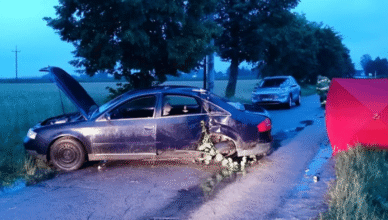 Śmiertelny wypadek pod Mławą. W poniedziałek na drodze relacji Chmielewo Wielkie – Grzebsk samochód osobowy uderzył w drzewo. W środku znajdowało się 5