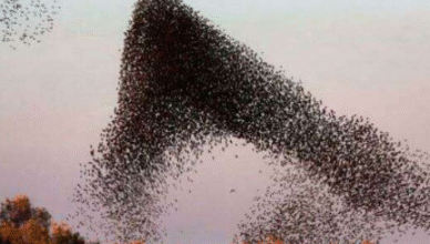 Spójrz na te fantastyczne obrazy na niebie, „namalowane” przez ogromne stada szpaków! Każdej zimy około półtora miliarda ptaków przelatuje nad Izraelem podczas migracji