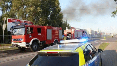 Straż pożarna sygnał o pożarze hali zakładu przetwarzania odpadów otrzymała o godzinie 4 nad ranem. Płomienie sięgały kilkudziesięciu metrów, a kłęby dymu widać